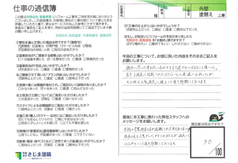 今まで関わらせて頂いたきじま塗装の 大切なお客様の声 CUSTOMER'S VOICE