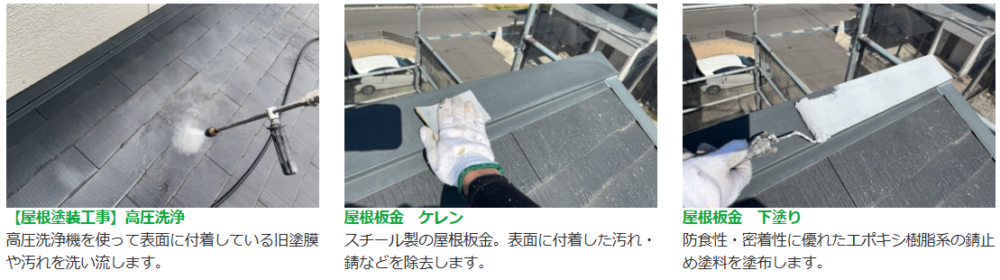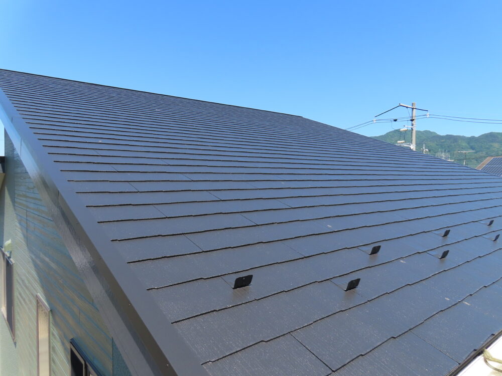 屋根は、日本ペイントのマイカフレーク含有の特殊アクリル樹脂塗料『ヤネガード』を提案させていただきました。