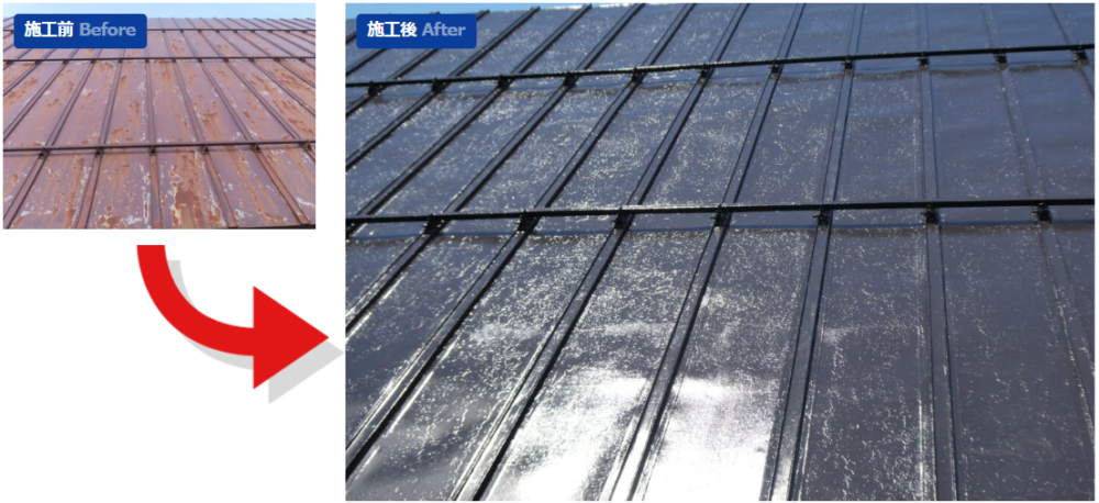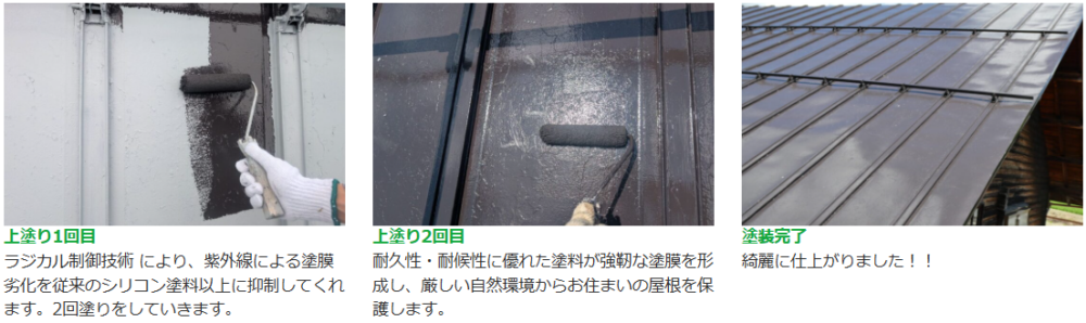 錆止めを塗布後、強靭な塗膜と作業性が両立された高耐候屋根用塗料『ファインパーフェクトベスト』で施工させていただきました。