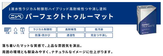 日本ペイントの『パーフェクトトゥルーマット』という塗料です!