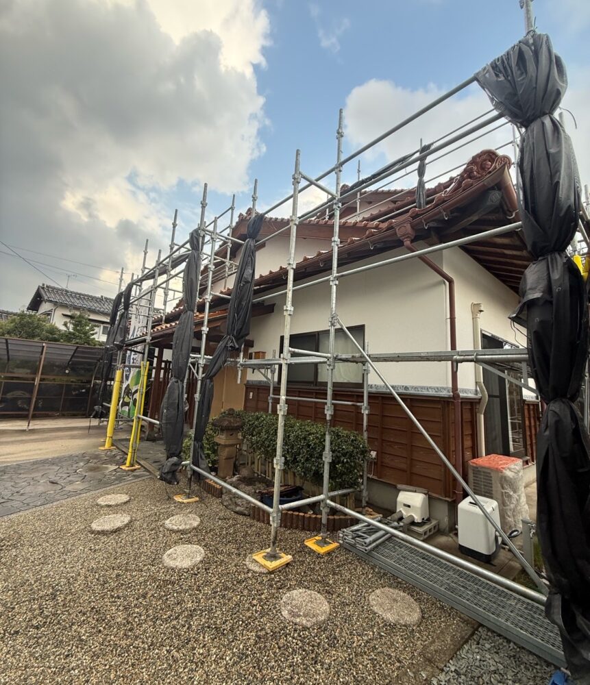 鳥取県境港市のS様邸にて、外壁塗装工事が進んでいます。