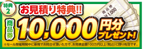 お見積り特典 「商品券 10,000円分プレゼント!」