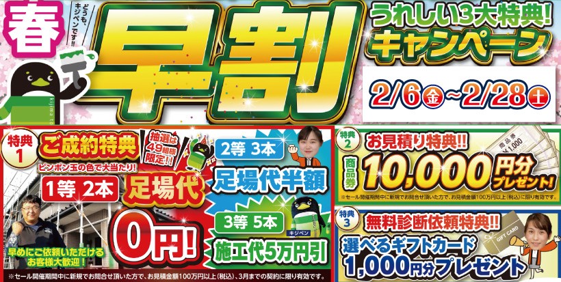 きじま塗装 早春 早割キャンペーン スタートです!🎉🎉🎉