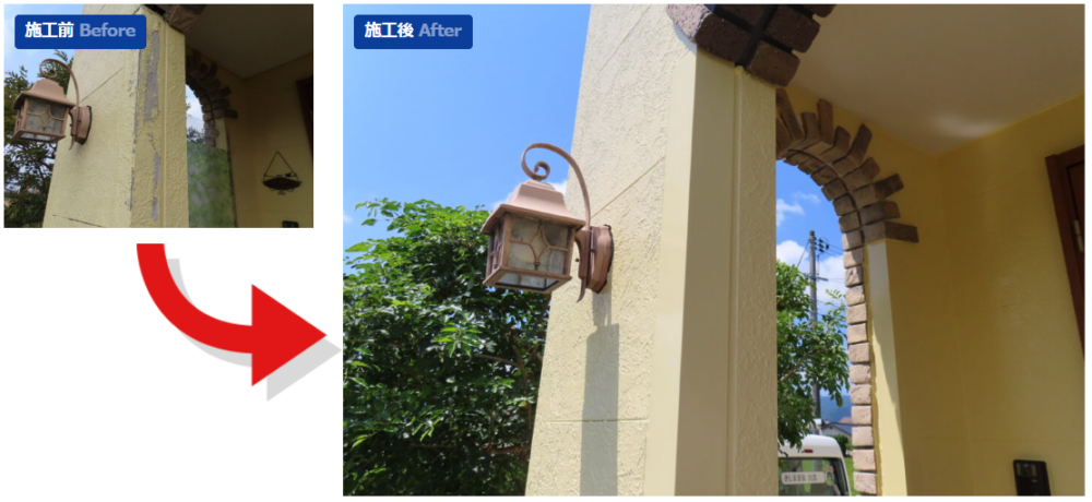 外壁面に細かな剥がれがおきていた部分に関しては通常下塗り(シーラー)を塗布後さらにサフェーサーを塗布し下地調整をきちんと行ってから塗装を行いました。