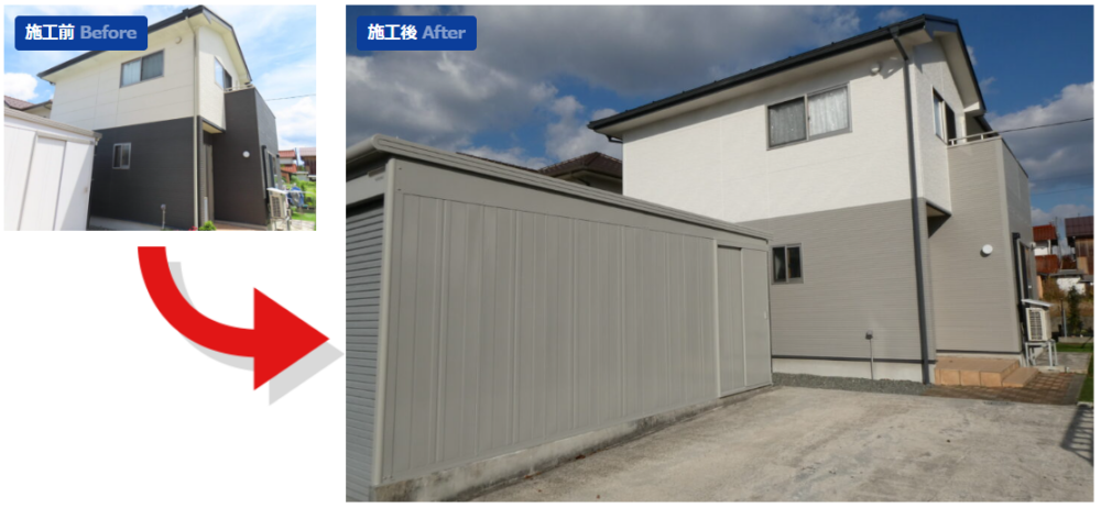新しい外壁色は落ち着いたグレージュと2階部分の明るいホイップアイボリーを組み合わせることで1階の色を引き立てる仕上がりとなりました。