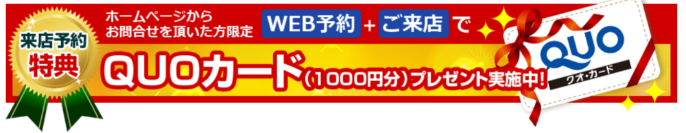 初回限定!WEB来店予約でクオカード1,000円分プレゼント!