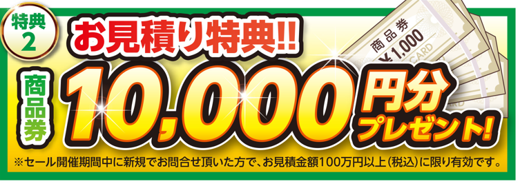 ※セール期間中に新規でお問合せ頂いた方で、お見積金額100万円以上(税込)に限ります。