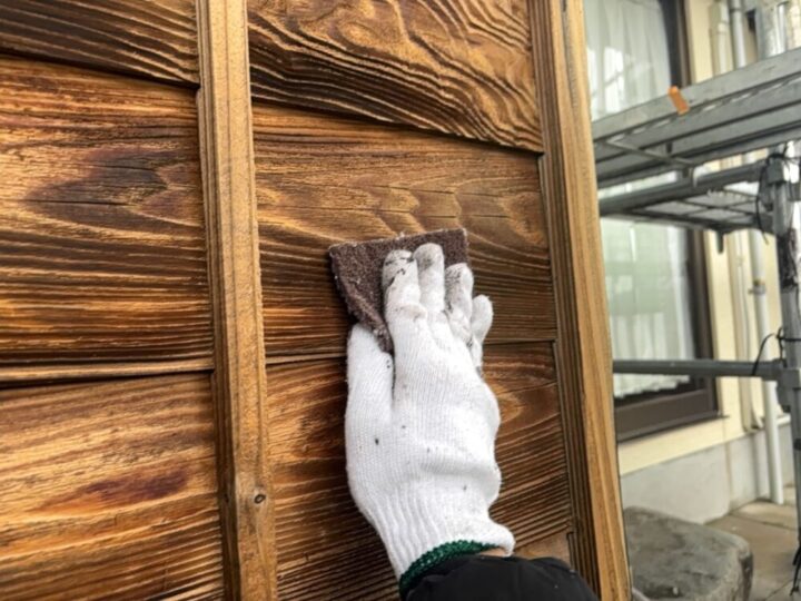 表面の汚れや古い塗膜、荒れた部分を除去します。塗料の密着を上げる重要な作業です。