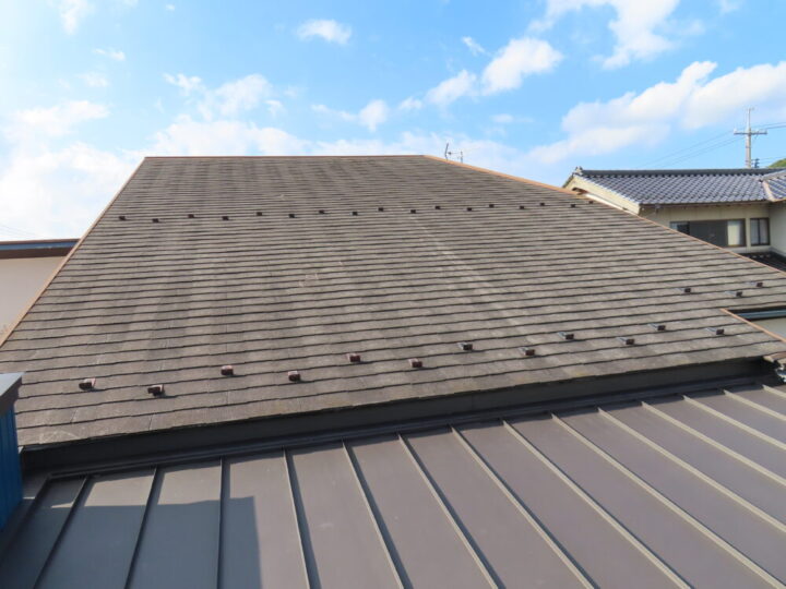 スチール製の屋根板金(棟・隅棟・谷)に防錆対策を施します。表面に付着した汚れ・錆などを除去します。