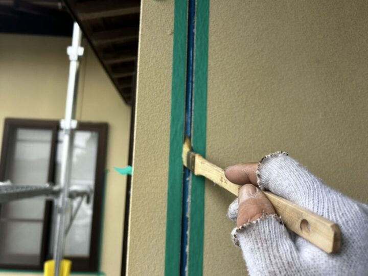 養生後、下地とシーリング材の密着性を向上させるための下塗り材(プライマー)を塗布します。