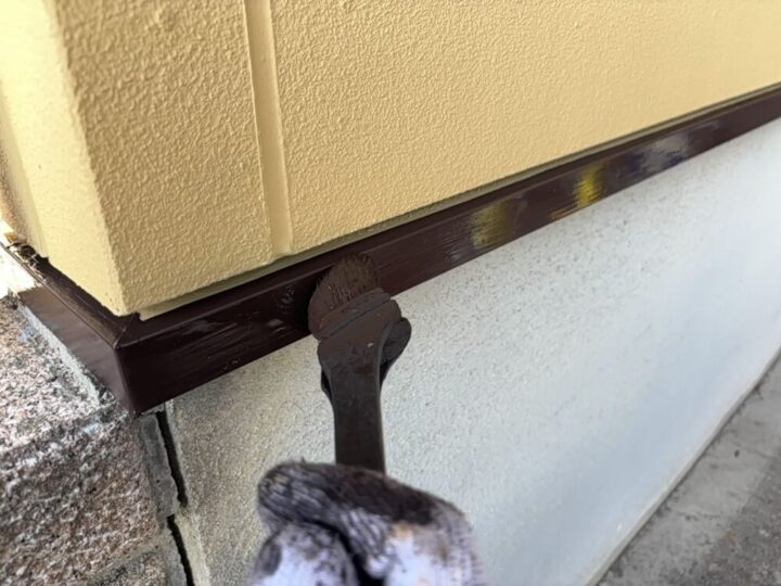 金属製の土台水切り。ケレン→下塗(錆止め)→高耐候シリコン塗料2回塗りで仕上げます。