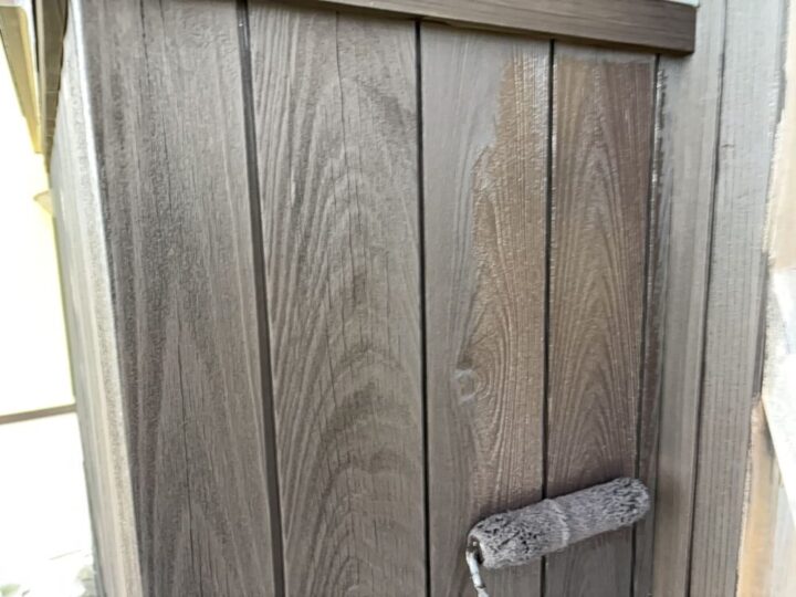 木部の腰壁。目荒らし→木部専用塗料で上塗り2回行っていきます。
