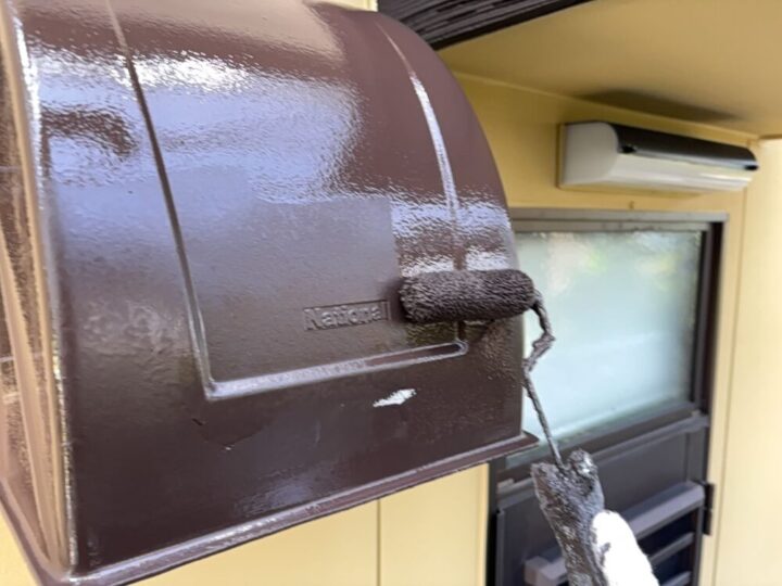 金属製の換気フード。ケレン→下塗(錆止め)→外壁色で2回塗りで仕上げました。