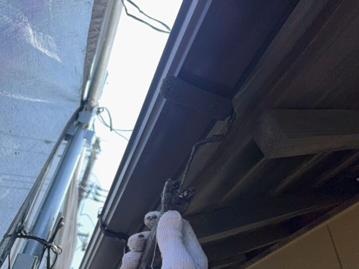 樹脂製の軒樋。ケレン→高耐候シリコン塗料2回塗りで仕上げます。