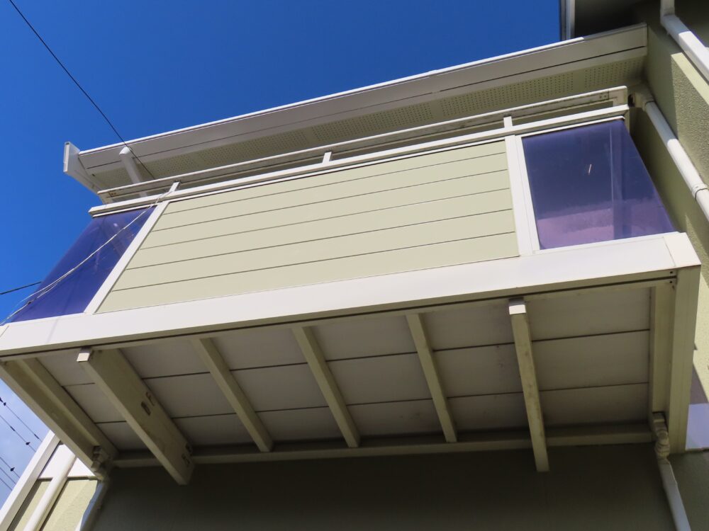 築31年が経過し、劣化が進行していたベランダの壁のサイディングは、塗装するだけではなく新しいサイデイングボードへ交換をし塗装を行いました。
