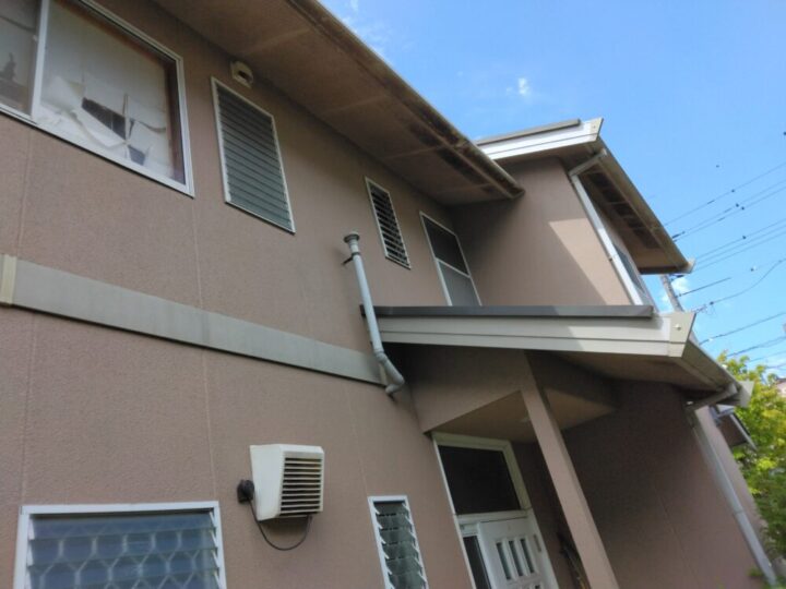 樹脂製の竪樋。ケレン→高耐候シリコン塗料2回塗りで仕上げます。