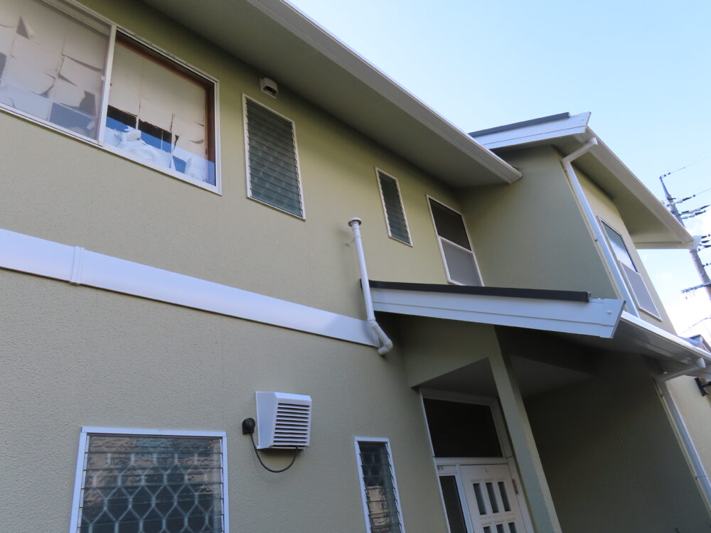 モルタル外壁特有の優しい質感を引き立てる、上品なハニーベージュ。お家全体がパッと明るくなり、帰るのが楽しみになるような、ぬくもり溢れる仕上がりになりました!!