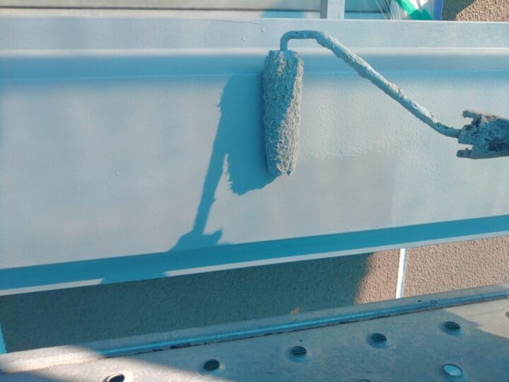 金属製の破風板。ケレン→下塗(錆止め)→高耐候シリコン塗料2回塗りで仕上げます。