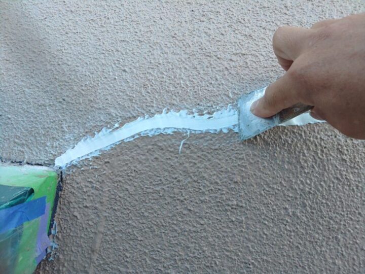 溝にシーリング材をしっかりと充填し、周囲の壁面と平らになるように仕上げます。
