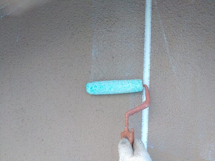 下地乾燥後、下塗り材(シーラー)を塗布します。含侵性と密着力に優れているため、脆弱部の補強・上塗り塗料の密着性を高めます。